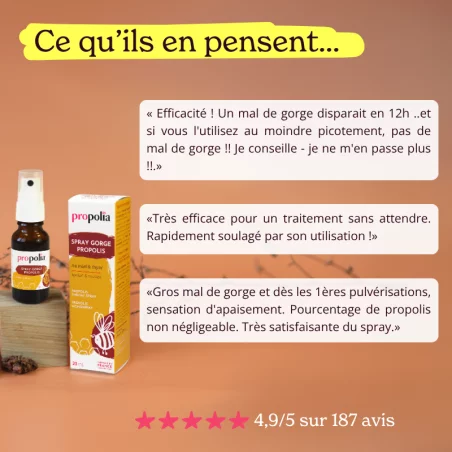 An historic product of the Propolia® line: its very concentrated formula combines Propolis, honey and essential oil of thyme. It has an immediate action on your mouth and throat in case of tickling or irritation and removing discomfort. It's one of the products most appreciated by our customers.